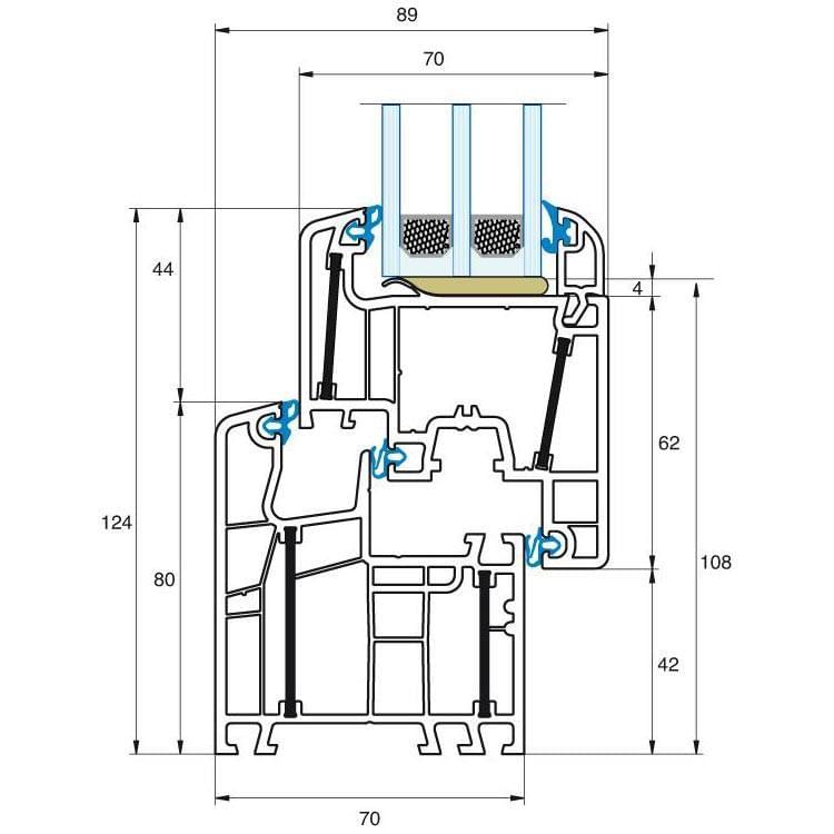 - Fully bonded glazing increases insulation allowing UW – value up to 0.87 W/m2K (reference size: 1230 x 1480mm)