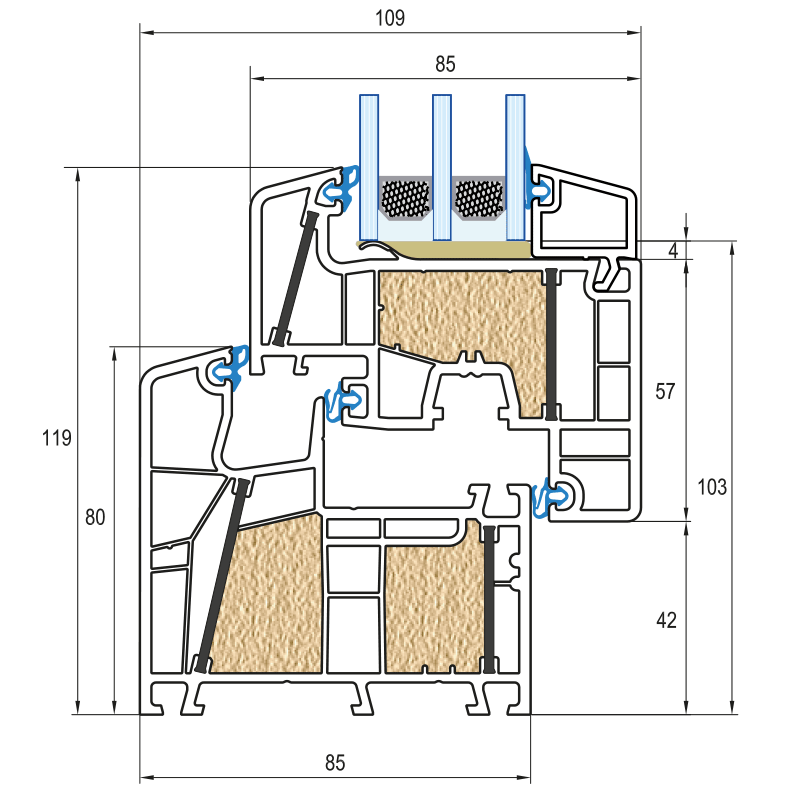 - Innovative adhesive bonding insulates glazing and prevents thermal bridging.